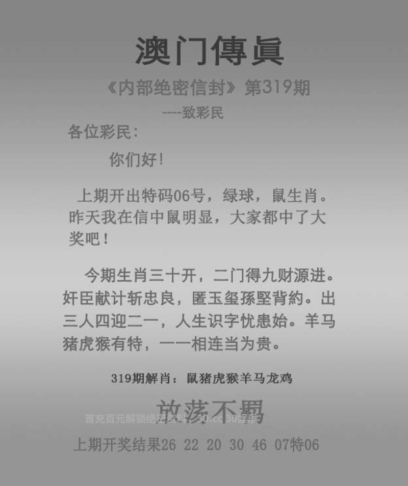 传真精解:今期奸臣献计斩忠良,解凶丑生肖鼠牛虎猴狗猪,一一相连当为贵,解单肖兔牛猪鸡羊蛇。